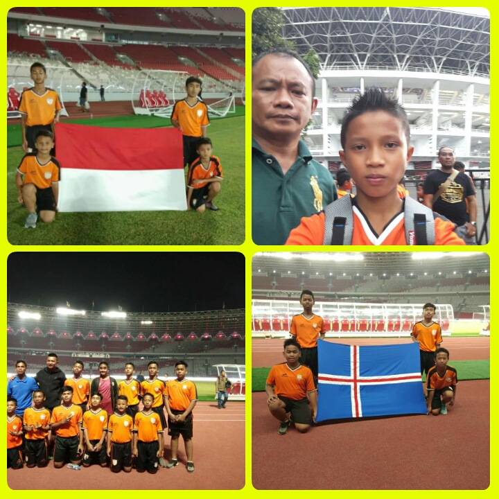 Bersama tiga siswa lainnya dari Akademi Sepak bola FU 15 FA terpilih sebagai pembawa bendera Merah Putih dalam pertandingan Indonesia lawan Island di Gelora Bung Karno Jakarta