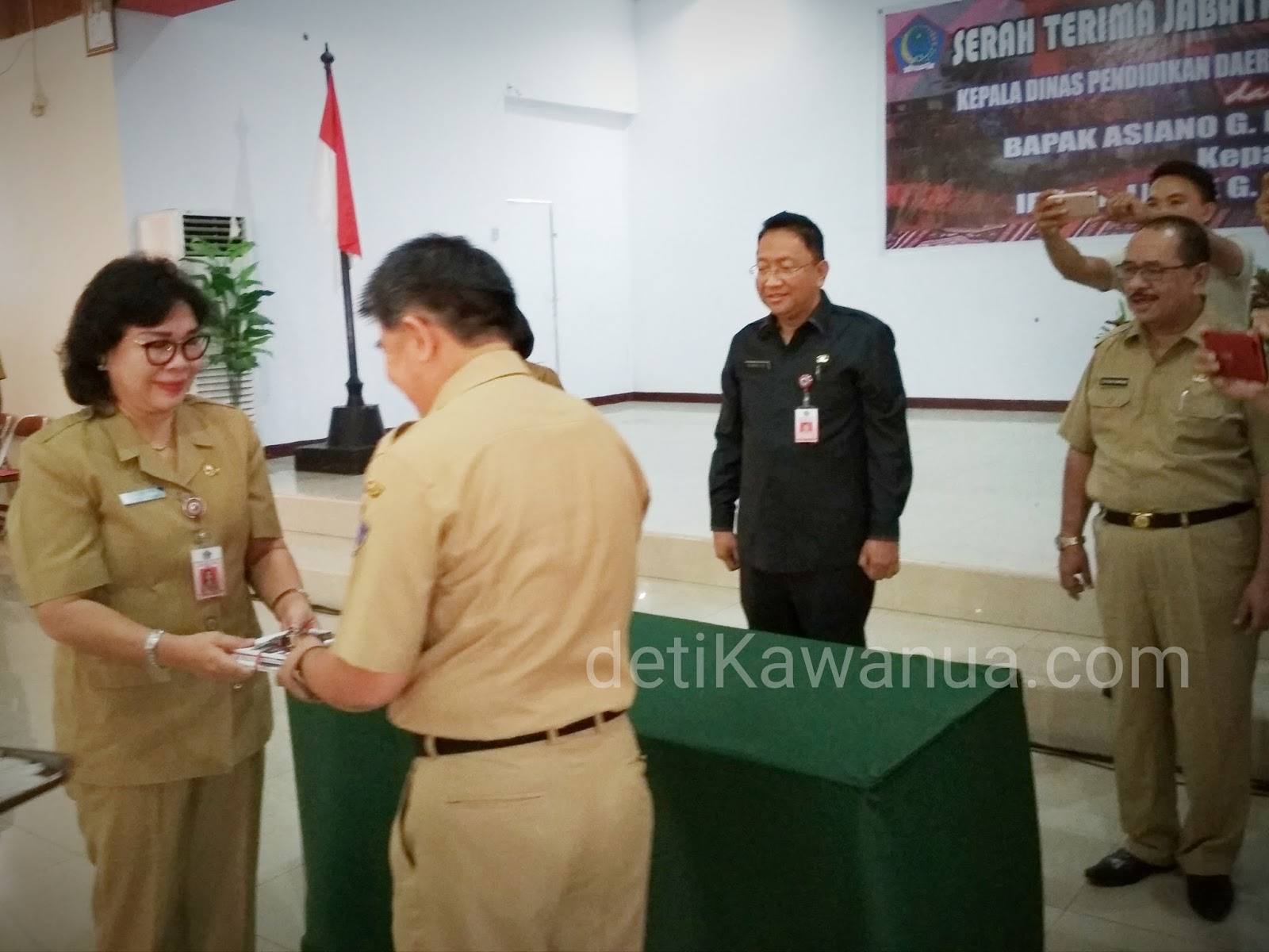 Manado, detiKawanua.com – Bertempat di Aula Dinas Pendidikan Daerah (Dikda) Sulut, Senin (12/02) pagi tadi, disaksikan Sekertaris Provinsi (Sekprov) Sulut, Edwin Silangen dan Asisten I, Edison Humiang, penyerahan memori jabatan dan aset kunci dan kendaraan dinas mobil dinas (Mobnas) DB 55 telah diserahkan mantan Kepala Dikda Sulut, Asiano G Kawatu kepada Kepala Dikda yang baru, Liesje Grace L Punuh, hal tersebut tertuang dalam agenda Serah Terima Jabatan dan Pisah Sambut Kepala Dinas Pendidikan Daerah (Dikda) Provinsi Sulut.
