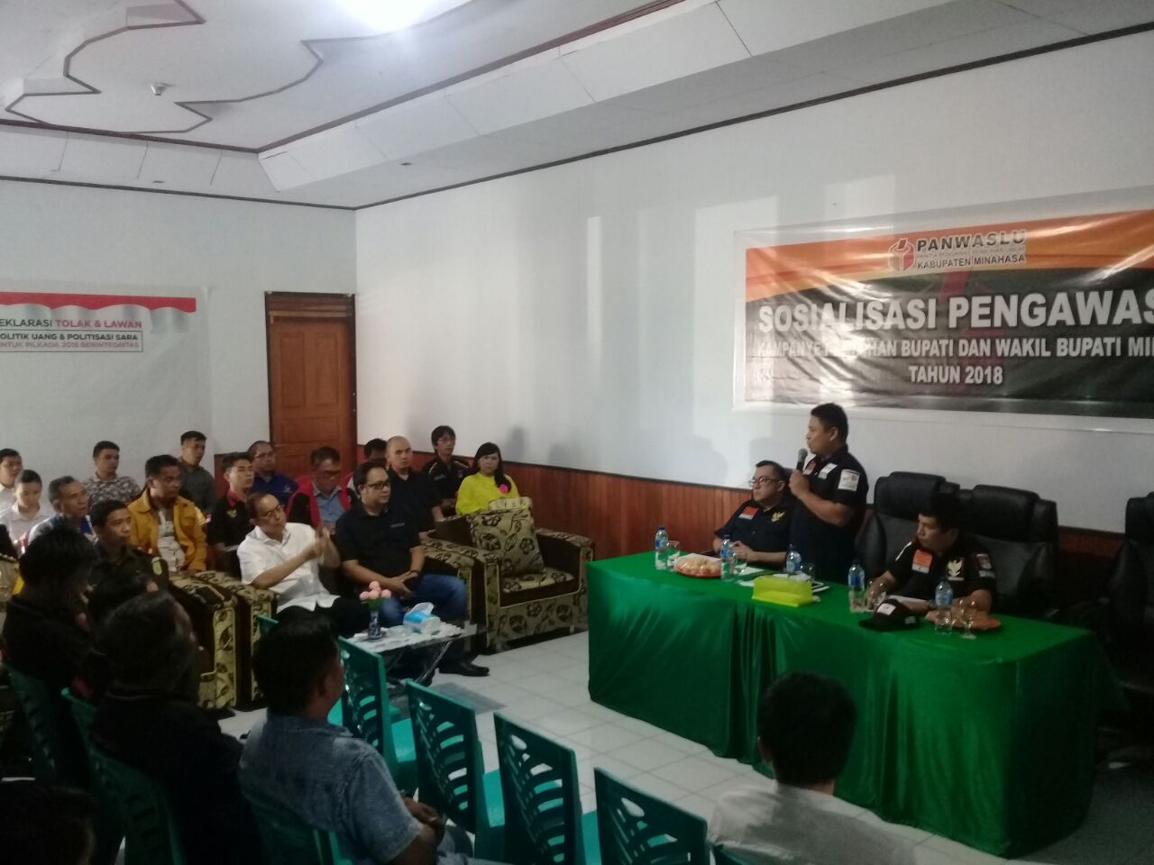 Minahasa, detiKawanua.com – Panitia Pengawas Pemilihan Umum (PANWASLU) Kabupaten Minahasa, dalam mensukseskan Pemilihan Kepala Daerah (Pilkada) Kabupaten Minahasa nanti,  menggelar Sosialisasi Pengawasan Kampanye Pemilihan Bupati dan Wakil Bupati Minahasa, seiring juga dengan Deklarasi Tolak & Lawan politik uang & Politisasi sara untuk pilkada 2018, yang juga merupakan kegiatan resmi, dari Badan Pengawas Pemilihan Umum (BAWASLU), Rabu (14/02) siang tadi, di Kantor PANWASLU Minahasa.