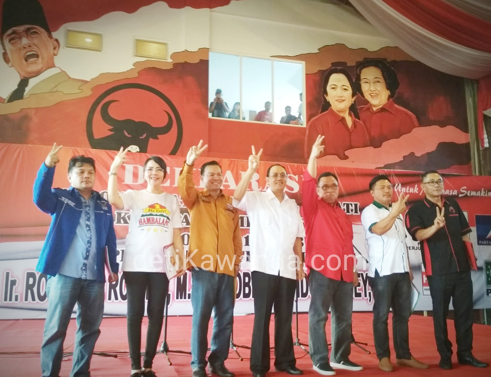 Minut, detiKawanua.com – Diawali dengan menyanyikan lagu kabangsaan Indonesia Raya dan mengheningkan cipta, kegiatan Deklarasi Pasangan Calon Bupati dan Wakil Bupati Minahasa periode 2018-2023 nomor urut 2, Roy Roring dan Robby Dondokambey (RR-RD) dari Partai Demokrasi Indonesia (PDI) Perjuangan serta didukung empat besar lainnya (Gerindra, Demokrat, PKB dan Hanura), pada Sabtu (17/02) sore tadi bertempat di Sekertariat DPD PDIP Sulut, jalan raya Ir. Soekarno Kabupaten Minahasa Utara (Minut), yang dihadiri langsung Ketua DPD PDIP Sulut, Olly Dondokambey beserta jajaran struktural PDIP Sulut.