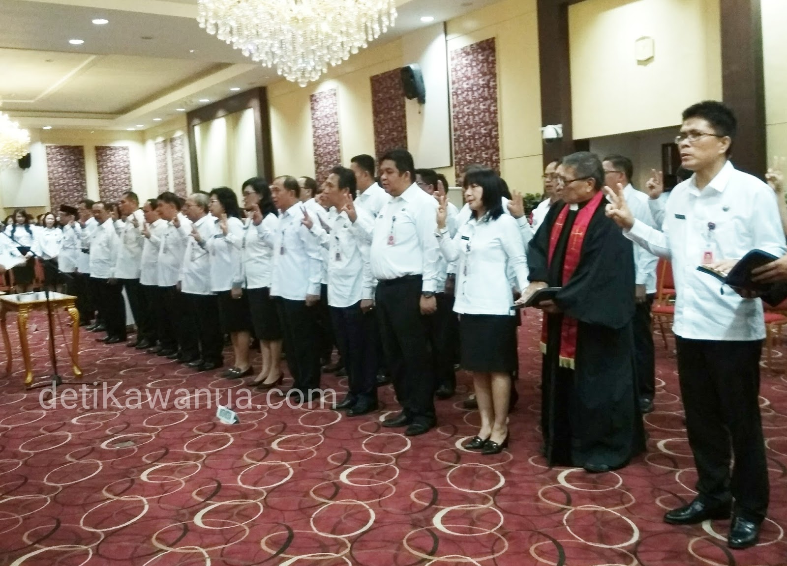 Manado, detiKawanua.com – Pelantikan, pengangkatan sekaligus pengukuhan Kabinet OD-SK (Gubernur Sulut, Olly Dondokambey dan Wakil Gubernur, Steven Kandouw) atau pejabat Pimpinan Tinggi Pratama, Administrator dan Pengawas di lingkup Pemerintahan Provinsi (Pemprov) Sulut yang telah digelar Jumat (09/02) siang tadi di Ruang CJ Rantung Kantor Gubernur. Mewakili Gubernur Olly, Wagub menyampaikan bahwa ucapan syukur dan boleh berbangga atas para pejabat yang baru dilantik karena hal itu merupakan bentuk komitmen dari gubernur dalam menempatkan pejabat secara profesional.