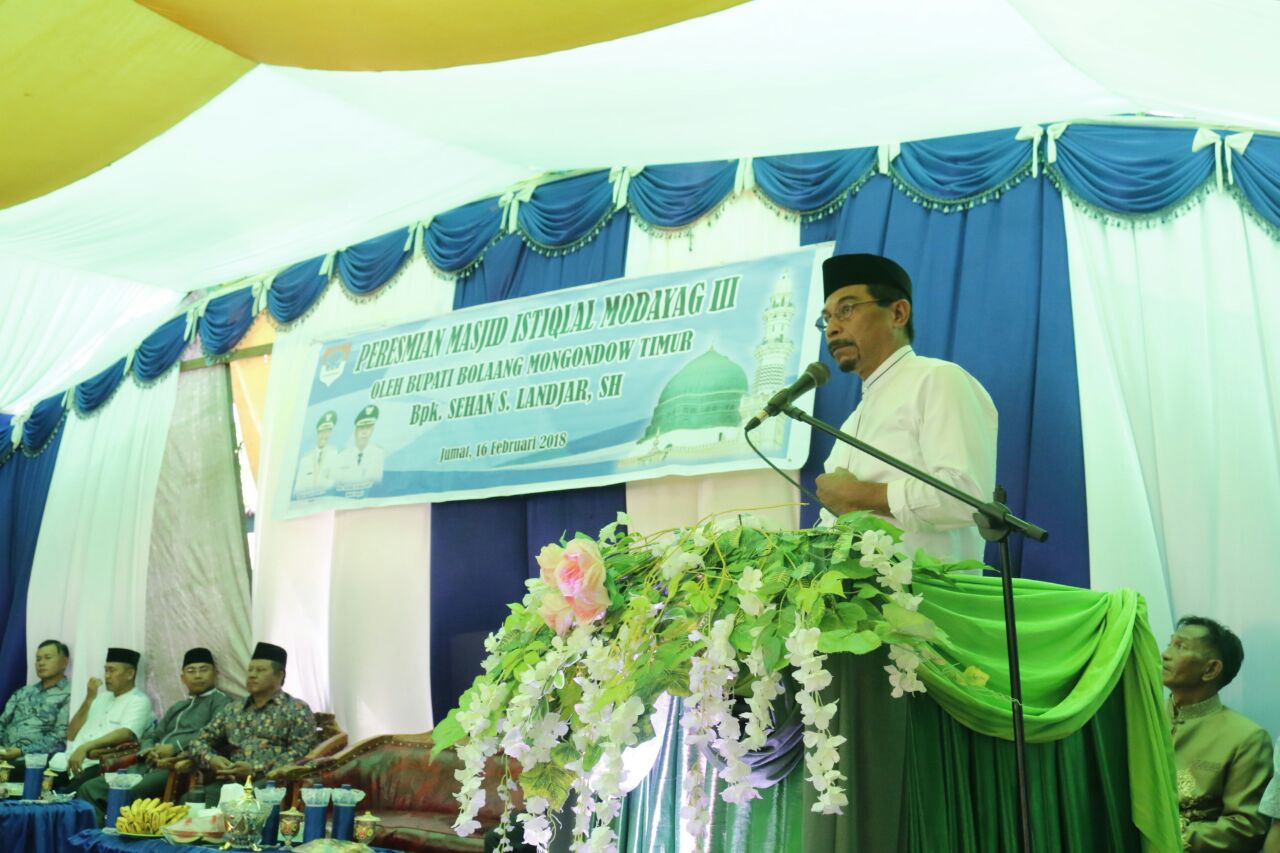 Boltim, detiKawanua.com – Bupati Bolaang Mongondow Timur (Boltim), Sehan Salim Landjar SH, Jumat (16/02) meresmikan masjid Istiqlal Desa Modayag III Kecamatan Modayag.