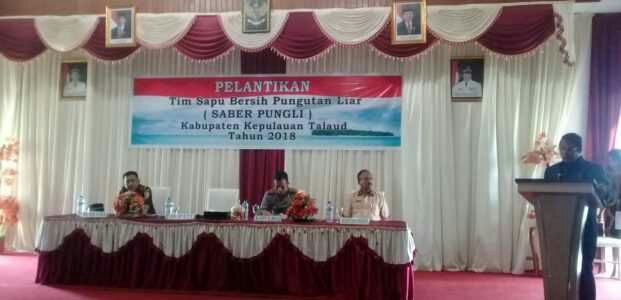 Pelantikan ini berdasarkan Surat Keputusan (SK) Bupati Kepulauan Talaud  No 104 tahun 2018 tentang Tim Sapu Bersih Pungutan Liar (Saber Pungli) Kabupaten Kepulauan Talaud dengan pertimbangan beberapa hal diantaranya melaksanakan ketentuan Pasal 08 ayat 02 Peraturan Presiden No 87 tahun 2016 tentang satuan tugas Pungutan Liar yang memiliki tugas yaitu Membangun sistem pencegahan dan pemberantasan pungutan liar, melaksanakan pengumpulan data dan informasi dari masyarakat sehubungan dengan pelayanan publik, mengkoordinasikan dan merencanakan serta melaksanakan operasi operasi pungutan liar dan melaksanakan Operasi Tangkap Tangan. (RhojakFM)