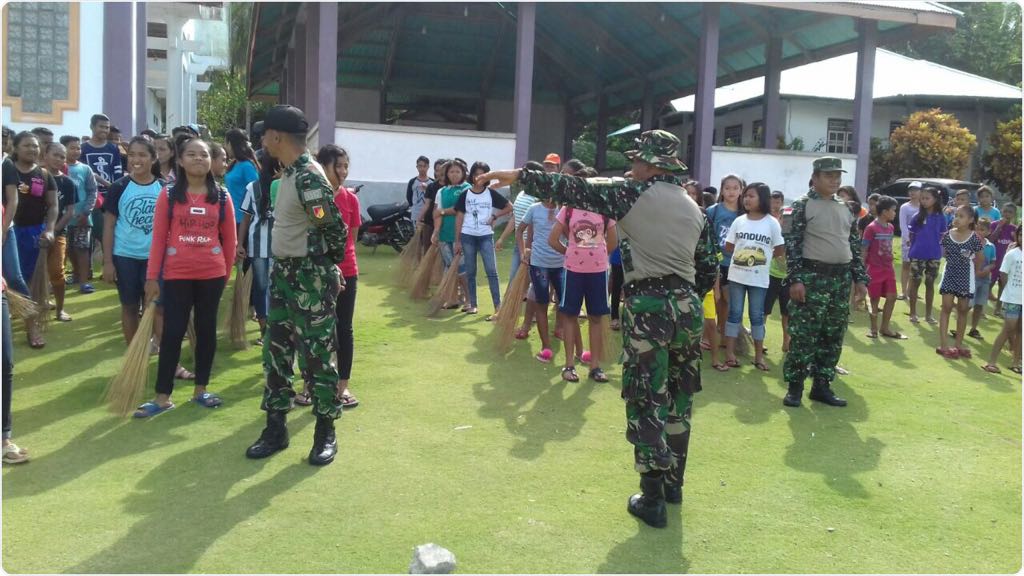 Kerja bakti  serentak tersebut dipusatkan di Pulau Kabaruan, Talaud dan dipantau langsung Koramil 1312-01/Kabaruan.  Kerja bakti di  Gereja – Gereja yang menjadi lokasi kegiatan didampingi babinsa dari masing – masing desa  yakni  Gereja Germita desa Taduna, didanpingi  babinsa Kopda Pithein Suluge, Gereja KGPM desa Taduna, didampingi Serda Deni Bee, Gereja GPDI desa Taduna, didampingi Sertu Agus Tuter, Gereja Katolik desa Rarange, didampingi Koptu Julianus Sapan, Gereja Germita desa Rarange, didampingi Serda Juanda Garing, dan Gereja Germita Kordakel,  didampingi Serda Hopni Gedoan.