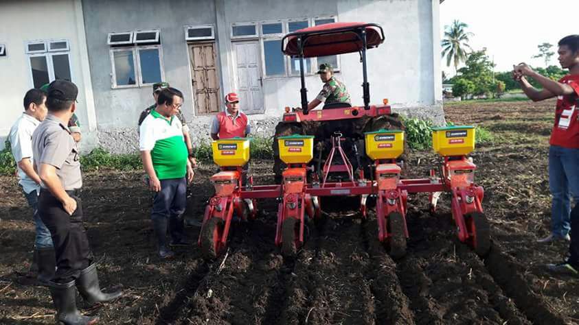 Penanaman dilakukan secara manual dan menggunakan mesin pupil yang dikemudikan plt Bupati , Dandim dan Kapolres.