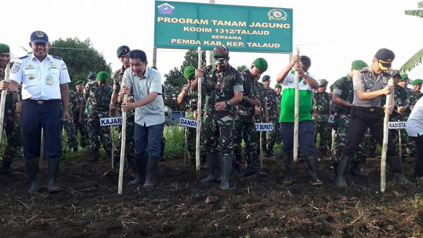 Talaud, detiKawanua.com – Dalam upaya mendukung program pemerintah terkait kedaulatan pangan. Berbagai hal tentunya perlu dilakukan. Salah satunya pemanfaatan lahan tidur. Setelah membantu masyarakat dalam pendampingan tanam padi. Kali ini Kodim 1312/ Talaud yang dipimpin Dandim, Letkol ( Arm) Gregorius Eka Setiawan,SE bersama jajaran anggota termasuk koramil dibawahanya  dan unsur Forkopimda melaksanakan penanaman perdana  program Pemanfaatan Lahan Tidur. Adapun benih pertama yang ditanam adalah jagung.