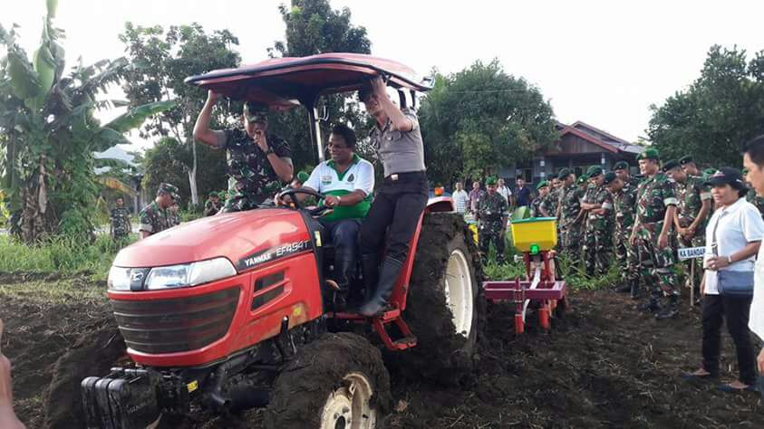 Penanaman dilakukan secara manual dan menggunakan mesin pupil yang dikemudikan plt Bupati , Dandim dan Kapolres.