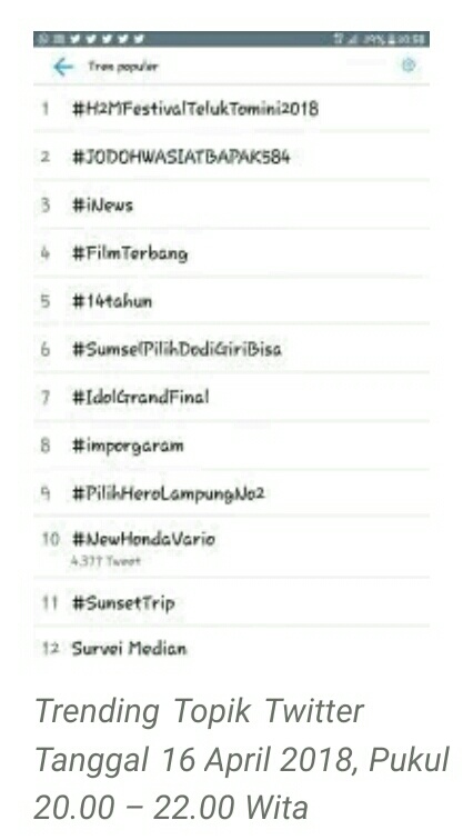 #H2MFestivalTelukTomini2018 yang sempat merajai Twitter.
