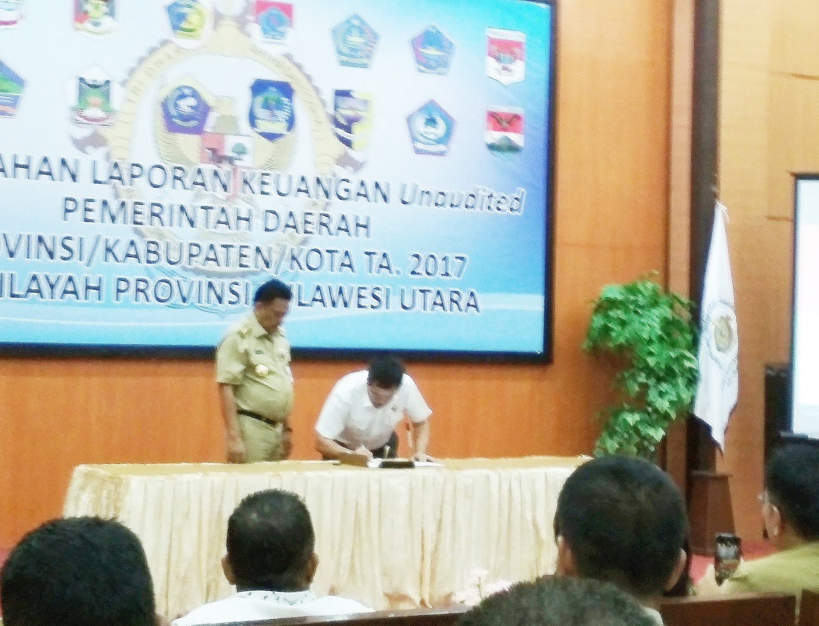 Manado, detiKawanua.com – Diawali dengan penandatangan berita acara serah terima Laporan Keuangan Pemerintah Daerah (LKPD) Pemerintah Provinsi (Pemprov) Sulut Tahun 2017, kemudian oleh Gubernur Sulut, Olly Dondokambey secara langsung menyerahkan dokumen LKPD kepada Kepala BPK RI Perwakilan Sulut, Tangga Muliaman Purba, diikuti para Bupati Walikota se-Sulut yang berlangsung di Aula Gedung BPK RI Perwakilan Sulut Jln 17 Agustus Manado, pada Senin (02/04) siang tadi.