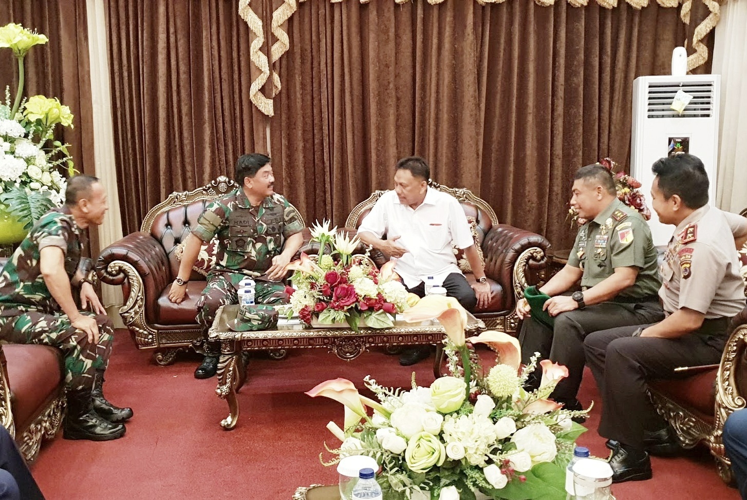 Manado, detiKawanua.com – Maksud tujuan kunjungan kerja perdana Panglima TNI Marsekal, Hadi Tjahjanto bersama rombongan diantarannya Kasad Jenderal TNI Mulyono dan Asops Kapolri Irjen Pol, Dede Juhara di Provinsi Sulawesi Utara (Sulut) pada Kamis (12/04) tadi yang disambut langsung Gubernur Olly Dondokambey itu, selain untuk melihat langsung keadaaan/kondisi kehidupan masyarakat Bumi Nyiur Melambai (Sulut), juga membahas persoalan keamanan terutama di Daerah Kepulauan terluar Miangas Kabupaten Talaud yang merupakan salah satu wilayah perbatasan di Negara Kesatuan Republik Indonesia (NKRI) dengan negara luar yakni Filipina.