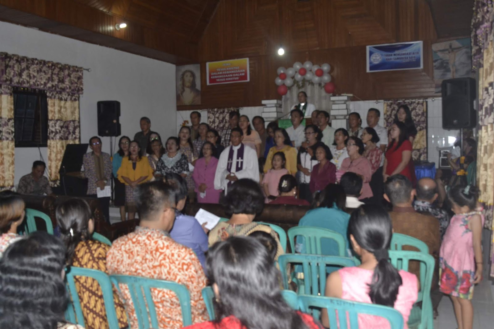 Pisah sambut Gembala yang dimulai pukul 16.00 ini diawali dengan Ibadah yang dipimpin oleh Pdt Frangky Londa STh MA yang juga sebagai Sekertaris umum pucuk pimpinan KGPM yang menekankan soal.pentingnya Pertumbuhan Iman dalam pelayanan dewasa ini.