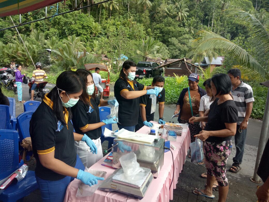 “Dengan antusias masyarakat datang memberikan ikan yang dibeli untuk diperiksa. Dan ada sebanyak 20 sample ikan yang kami periksa, hasilnya negatif formalin, tak hanya ikan, kami beserta BPOM juga memeriksa mie, tahu, kue dan bakso, kunci Lumiu. (JS)