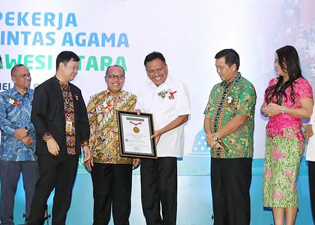 Manado, detiKawanua.com – Kembali mendapatkan penghargaan dari Museum Rekor Dunia Indonesia (MURI), Gubernur Sulut, Olly Dondokambey dalam 2 tahun kepemimpinannya pun terhitung telah mengantongi 2 penghargaan dunia tersebut (MURI) diantaranya yang pertama menjadi guru pengajar 10.000 siswa se-Sulut yang dipusatkan di Kabupaten Minahasa belum lama ini serta yang kedua mampu memberikan perlindungan bagi 35.000 Pekerja Lintas Agama (PLA) se-Sulut yang meliputi para pekerja Agama Kristen Protestan, Katolik, Islam, Hindu, Buddha, dan Konghucu melalui Badan Penyelenggara Jaminan Sosial Ketenagakerjaan (BPJS-TK) untuk Jaminan Kecelakaan Kerja (JKK) dan Jaminan Kematian (JKM) yang telah diserahkan langsung Direktur Utama BPJS Ketenagakerjaan Agus Susanto kepada Gubernur Olly yang didampingi Wakil Gubernur, Steven Kandouw di Gedung Manado Convention Centre (MCC), Jumat (11/05).
