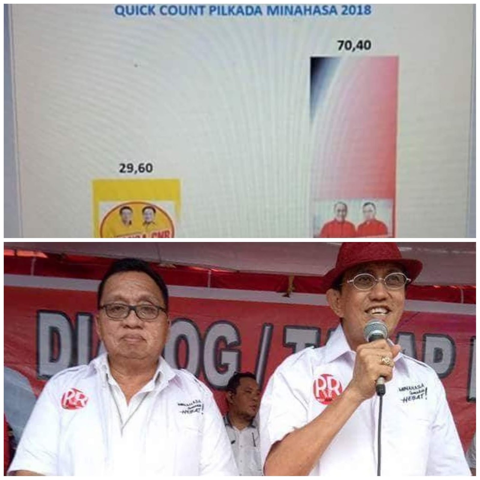 “Sambil menunggu hasil KPU. Sementara ini memberikan bukti bahwa kita harus mengawal pembangunan di Minahasa dan Sulut dibawa kepemimpinan Gubernur Olly Dondokambey dan Wagub Steven Kandouw sehingga Sulut dan Minahasa selalu diberkati Tuhan,” terang ROR yang juga diusung 4 partai lainnya seperti (Gerindra, Hanura, PKB dan Demokrat).