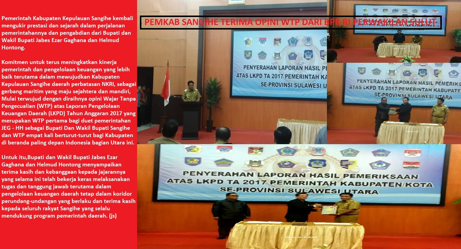 Pemkab Sangihe Raih Opini WTP, JEG – HH : Terima Kasih Untuk Jajaran Dan Rakyat Sangihe