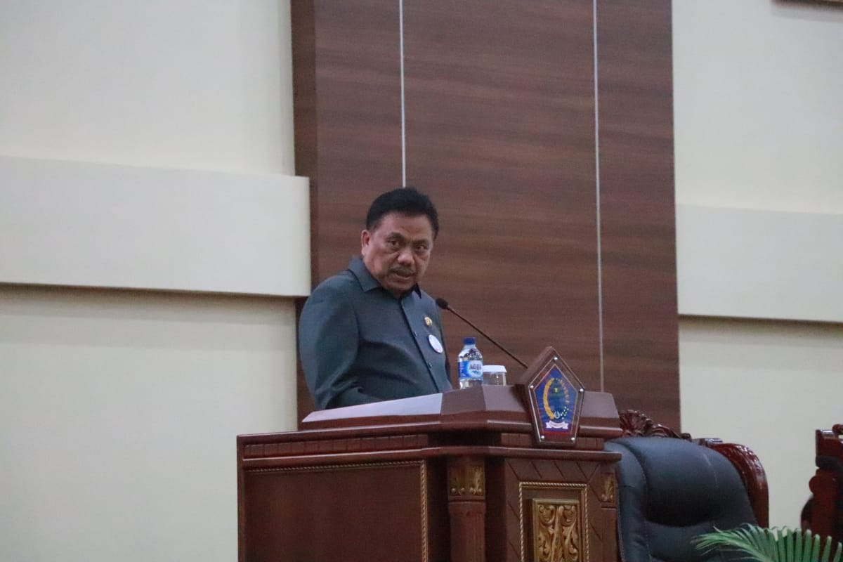 Gubernur Sulut, Olly Dondokambey saat memberikan sambutan di Rapat Paripurna.