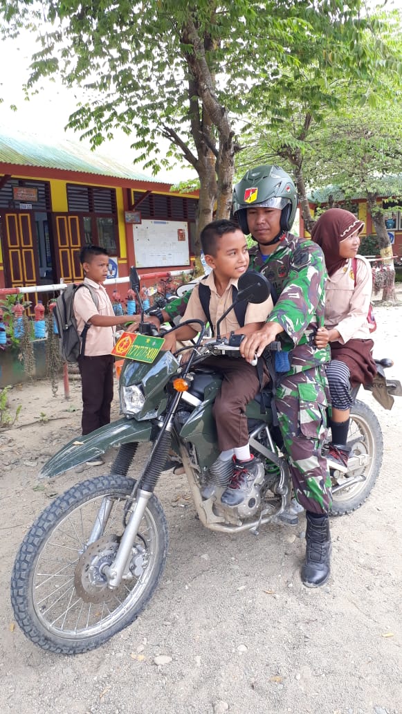 Merasa Iba Liat Anak Pulang Sekolah Jalan Kaki, Serda Yusuf Beri Tumpangan Gratis Hingga Kerumah