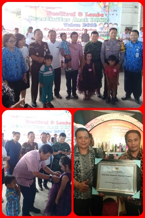 Penghargaan sebagai Kabupaten Layak Anak diterima langsung Bupati James Sumendap SH yang diserahkan Menteri Pemberdayaan Perempuan dan Perlindungan Anak Prof. DR. Yohana Susana Yembesi Dip. Apling, MA pada puncak perayaan Hari Anak Nasional di Dyandra Convention Center Surabaya, Senin (23/7/2018).