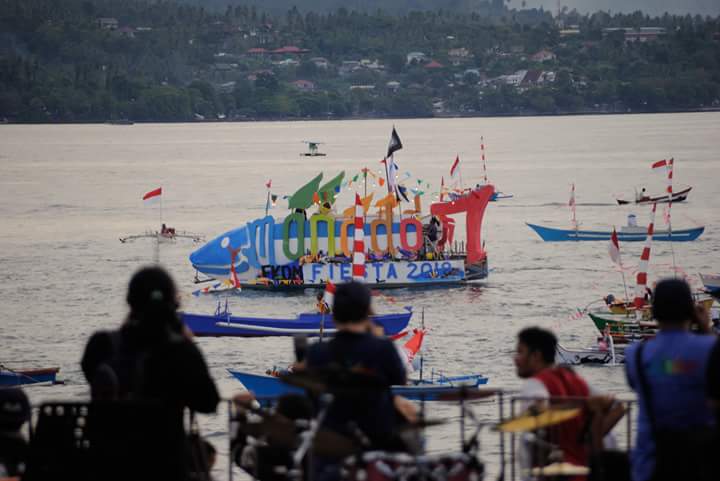 “Parade dari kepolisian dan TNI mengawali pesta karnaval di darat. Kemudian disusul aksi tarian lokal, mulai dari Katrili hingga atraksi ekstrim tarian perang Kabasaran,” ucap Lenda.