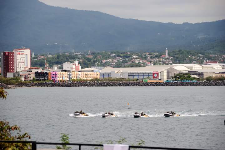 Kemeriahan berlanjut. Usai disajikan atraksi terjun payung dan paramotor serta pesawat tempur, ribuan pasang mata diarahkan melihat ke arah teluk Manado. Di mana, puluhan perahu telah siap berlomba.