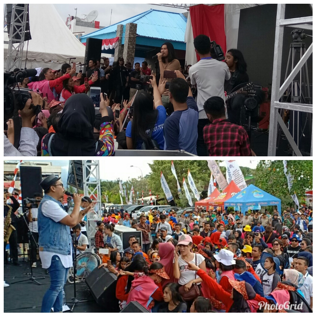 Manado, detiKawanua.com – Performance Sammy Somurangkir dan Virzha ‘Idol’ saat berlangsungnya Pemecahan Rekor Menyelam Massal Wanita dan Bendera Terpanjang dalam Laut Indonesia, menghipnotis pengunjung Kawasan Megamas Manado, Sabtu (11/08/2018) siang.