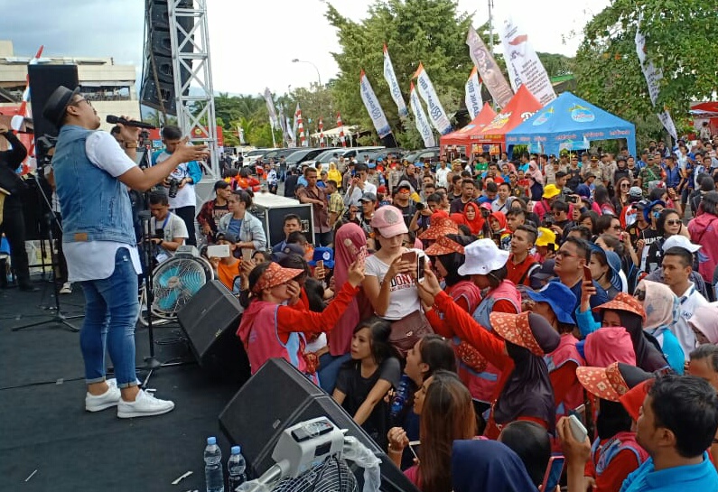Manado, detiKawanua.com – Performance Sammy Somurangkir dan Virzha ‘Idol’ saat berlangsungnya Pemecahan Rekor Menyelam Massal Wanita dan Bendera Terpanjang dalam Laut Indonesia, menghipnotis pengunjung Kawasan Megamas Manado, Sabtu (11/08/2018) siang.