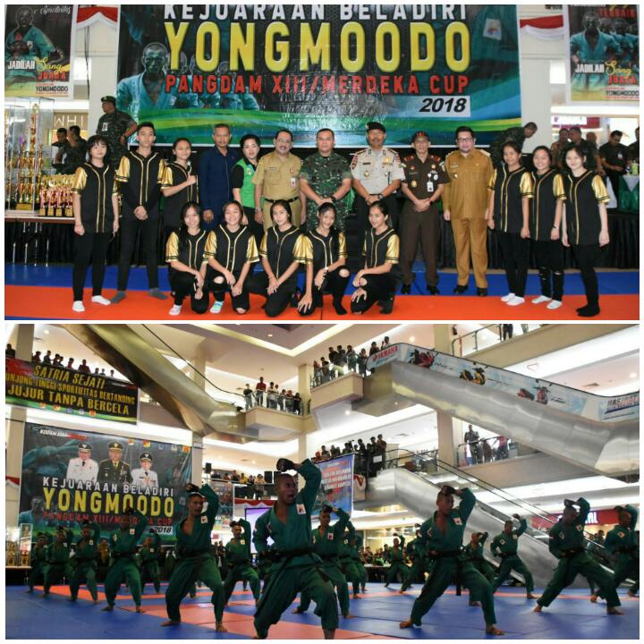 XIII/Merdeka untuk turut serta menggugah dan menggairahkan semangat berolahraga dan berprestasi masyarakat Indonesia, sekaligus merupakan salah satu wujud pembinaan teritorial dan memperkokoh kemanunggalan TNI dengan rakyat.Hadirin dan peserta Kejuaraan Yongmoodo yang saya hormati,berkenaan dengan penyelenggaraan Kejuaraan Yongmoodo Pangdam XIII/Merdeka Cup Tahun 2018 ini, atas nama pribadi dan selaku Pangdam XIII/