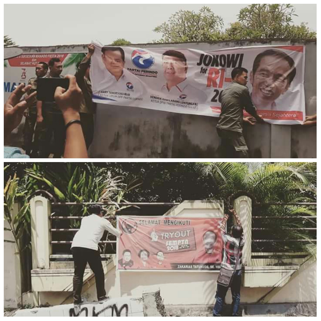 Bawaslu Manado saat menertibkan APK, Kamis (13/09/2018).
