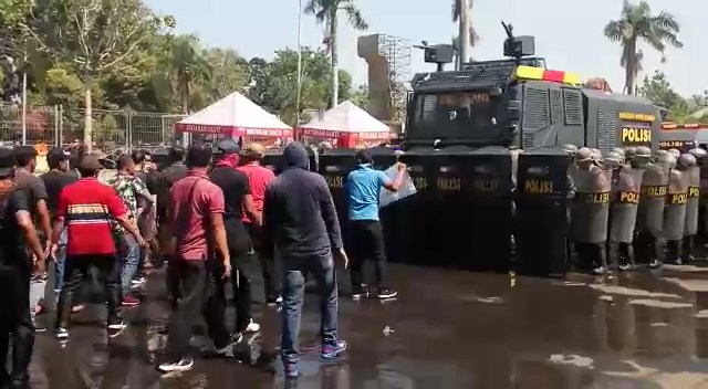 Pati, detiKawanua.com – Unjuk rasa anarkis tentang Pemilu yang terjadi di Pati pada Selasa (25/09) siang tadi, dapat diredam oleh anggota TNI Polri. Simulasi Latihan Pra Operasi Mantap Brata 2018 yang melibatkan ratusan anggota Polres serta anggota TNI untuk pengamanan Pemilihan Legislatif (Pileg) dan Pemilihan Presiden (Pilpres) 2019 digelar di lapangan Stadion JoyoKusumo Pati.