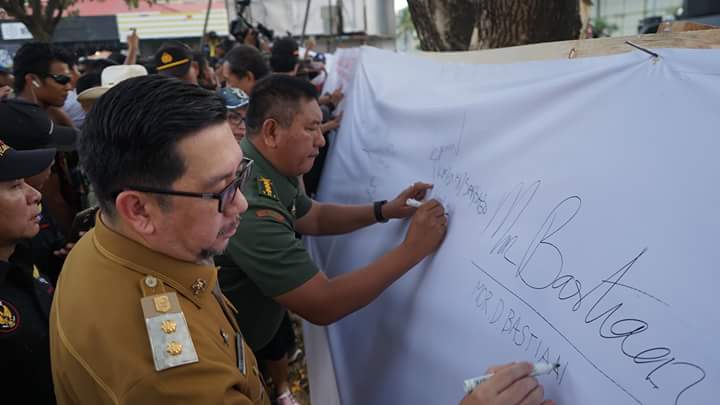 Dalam kesempatan itu, Wawali ikut menandatangani spanduk mendukung terselenggaranya Pemilu Damai di Sulawesi Utara. ***