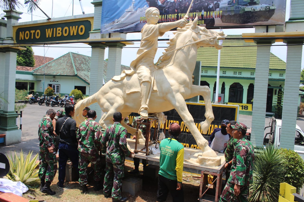 Di temu pendim Pati, Orang nomer satu di jajaran Kodim Pati menjelaskan patung dari bahan fiberglass itu dibuat seniman patung asal Pati, pengerjaan pendirian patung dimulai sejak Selasa (16/10/2018) pagi, Tepat lurus menghadap ke Markas Kodim 0718/Pati dapat melihat sebuah patung. yang gagah menghadap ke timur Tokoh dari salah satu Pahlawan Nasional yaitu, Pangeran Diponegoro dan dalam patung tersebut nampak gagah sambil menunggangi kuda dan membawa sebilah Keris. dari sini dapat membayangkan betapa gagahnya dan mengobarkan semangat berjuang dan maju terus demi rakyatmu,”tegas Dandim Pati (narto pendim Pati)