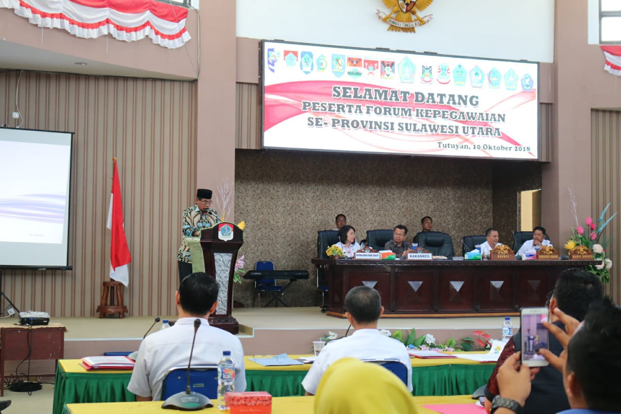 Boltim, detiKawanua.com – Kabupaten Bolaang Mongondow Timur (Boltim) menjadi tuan rumah kegiatan Forum Kepegawaian se-Sulawesi Utara (Sulut). Kegiatan ini merupakan kerja sama antara Badan Kepegawaian Daerah (BKD) Provinsi Sulut dengan BKPSDM Boltim. Kegiatan yang dihadiri oleh seluruh utusan BKPSDM se-Sulut ini, digelar di Aula lantai III Kantor Bupati Boltim pada Rabu (10/10/2108), dengan menghadirkan Kepala BKD Provinsi Sulut Femmy Suluh serta Kepala Kantor BKN XI Regional Sulut yakni Wakiran SH, MH sebagai pemateri.