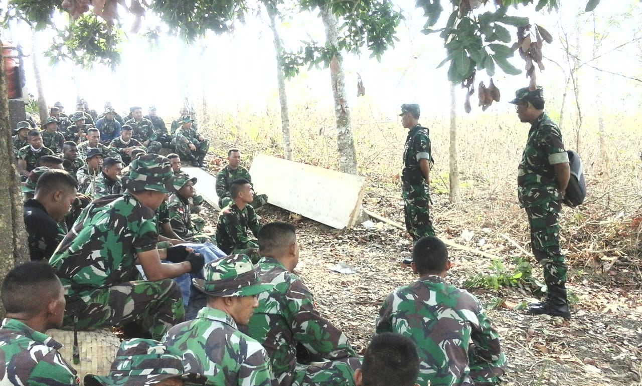 Rembang, detiKawanua.com – Komandan Satgas TMMD Reguler 103 Kodim Rembang memlalui Kepala Staf Mayor Caj Yoyok Sunaryo S.I.P memimpin apel pagi di tepian hutan di lereng bukit dekat lokasi TMMD Reguler di Desa Pasedan Kecamatan Bulu Rembang.