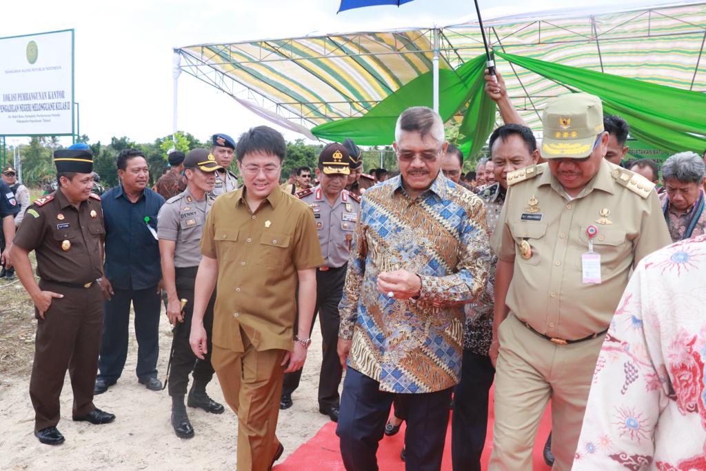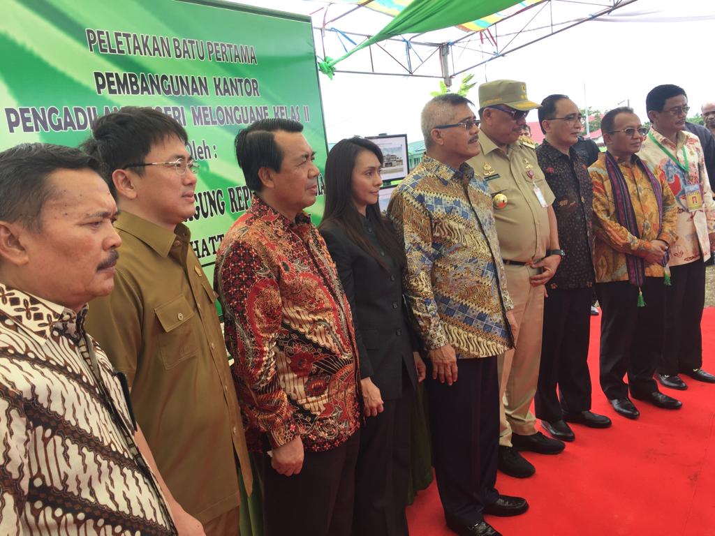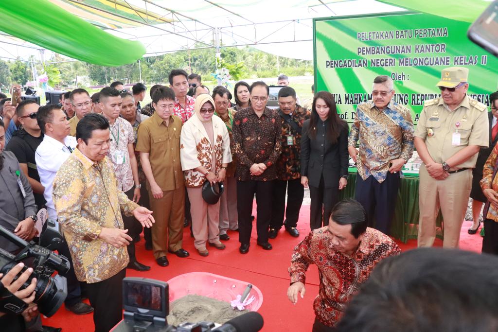Acara diakhiri dengan peletakan batu pertama pembangunan kantor pengadilan negeri melonguane kelas II oleh Ketua MA, Wakil Ketua MA, Gubernur Sulut dan Bupati Kepulauan Talaud. (Adv)