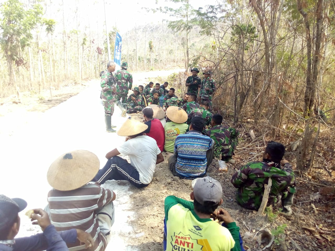 Hal itu terlihat saat anggota Satgas dan warga beristirahat sejenak bersama warga, sambil menikmati sebatang rokok . Mereka terlihat akrab, duduk santai sambil bersenda gurau. Di pinggir jalan yang menghubungkan antara Dukuh Ngotoko dengan Desa Pasedan tempat mereka bekerja.