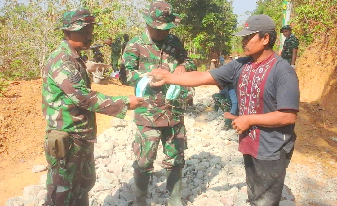 Warga Desa Pasedan Bagikan Masker Dilokasi TMMD Rembang