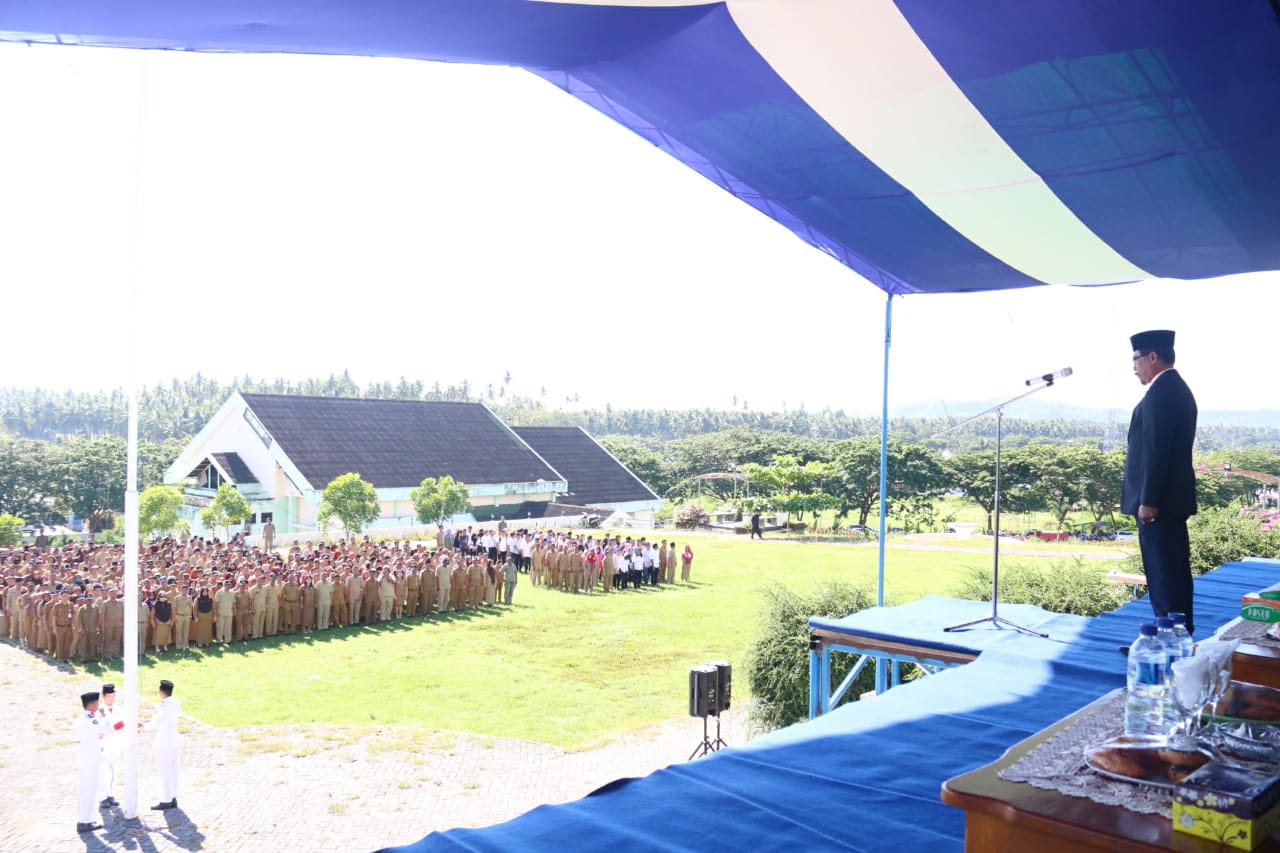 Upacara yang mengusung tema ‘Meningkatkan profesionalisme guru menuju pendidikan abad XXI’ dilaksanakan di halaman kantor Bupati dan dihadiri ratusan guru se-Boltim.
