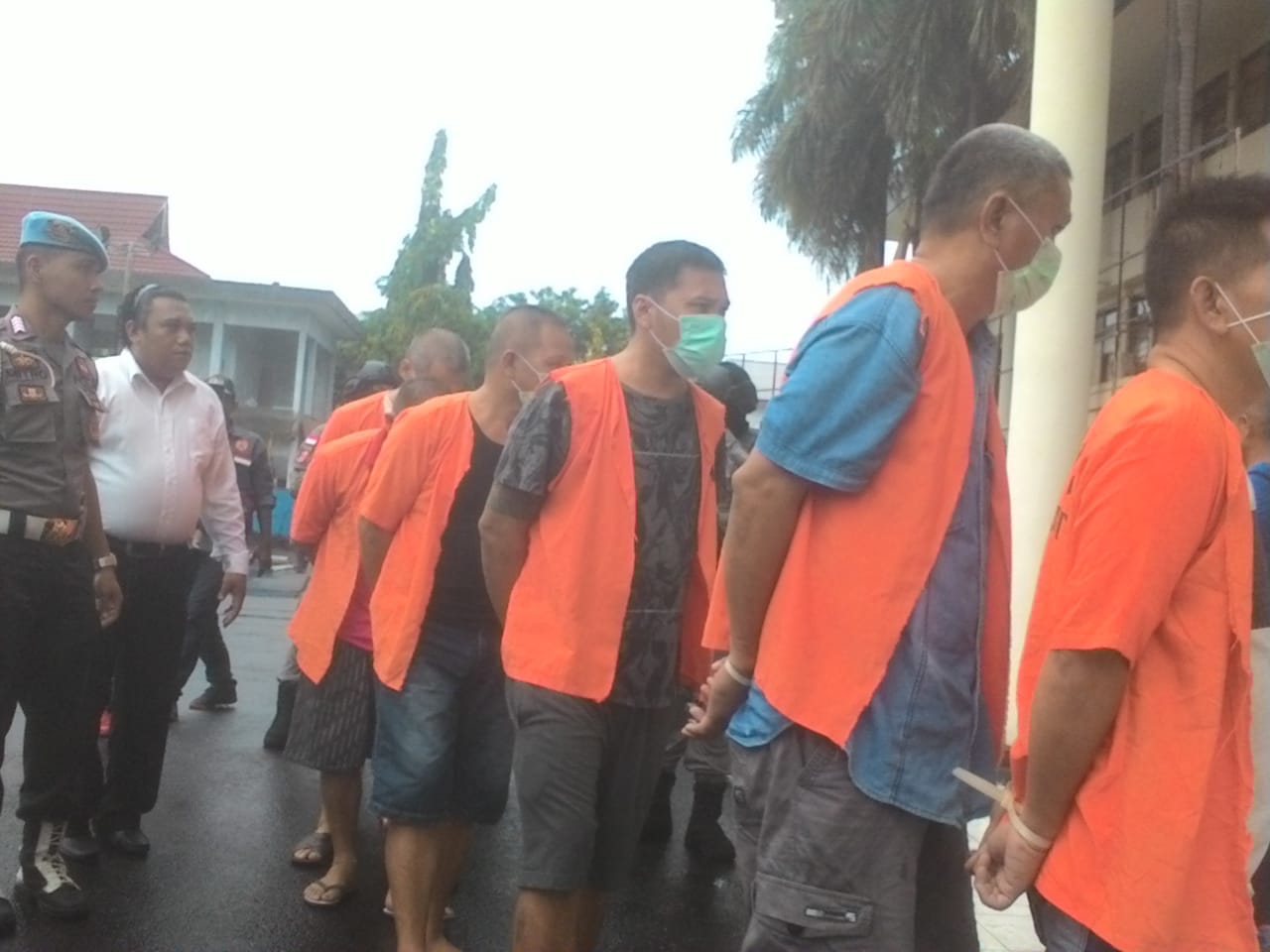 Adapun keempat belas tersangka tersebut, yaitu: RM alias Rendy (29) warga Toruakat Dumoga, ML alias Melki (42) warga Tanjung Batu Manado, RG alias Retno (31) warga Desa Pusian Dumoga, HJ alias Hen (30) warga Kelurahan Bitung Amurang, RK alias Ricky (30) warga Desa Tumpaan, MP alias Rina (48) warga Singkil Manado, JM alias Jul (31) warga Kotamobagu, SM alias Ser (41) warga Kotamobagu, GM alias Gito (30) warga Kotamobagu, HK alias Heldy (41) warga Moat Boltim, MM alias Marthen (32) warga Toruakat Dumoga, HI alias Hengky (43) warga Gorontalo, HM alias Hamdan (50) warga Kotamobagu, TA alias Taufiq.