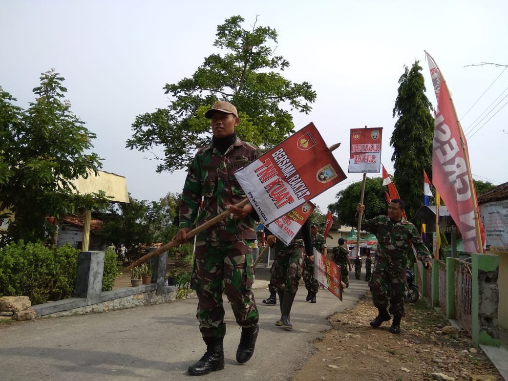 Dipimpin Serka Sumbito, para anggota Satgas TMMD membawa dan memasang umbul-umbul yang sudah disiapkan. Serka Sumbito menyampaikan bahwa pemasangan umbul-umbul ini untuk memeriahkan Desa Pasedan,