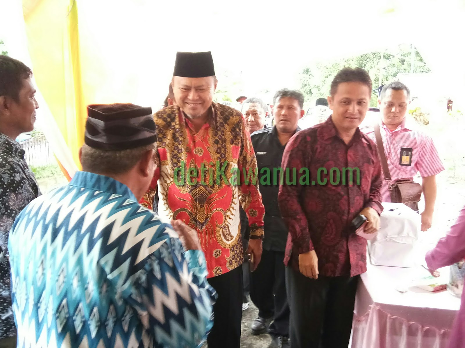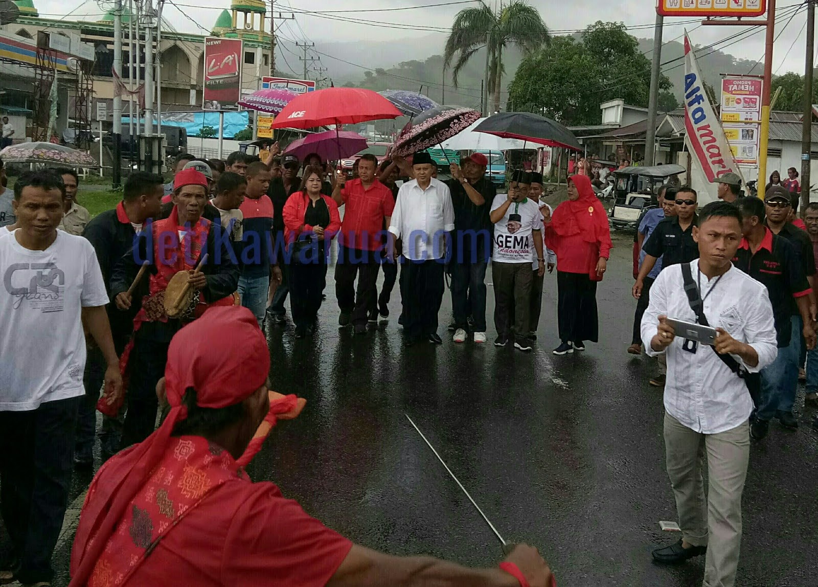 Meski hujan mengguyur, tak menyurutkan warga Inobonto menyambut Ketua GEMA Sulut, Haji Herson Mayulu.