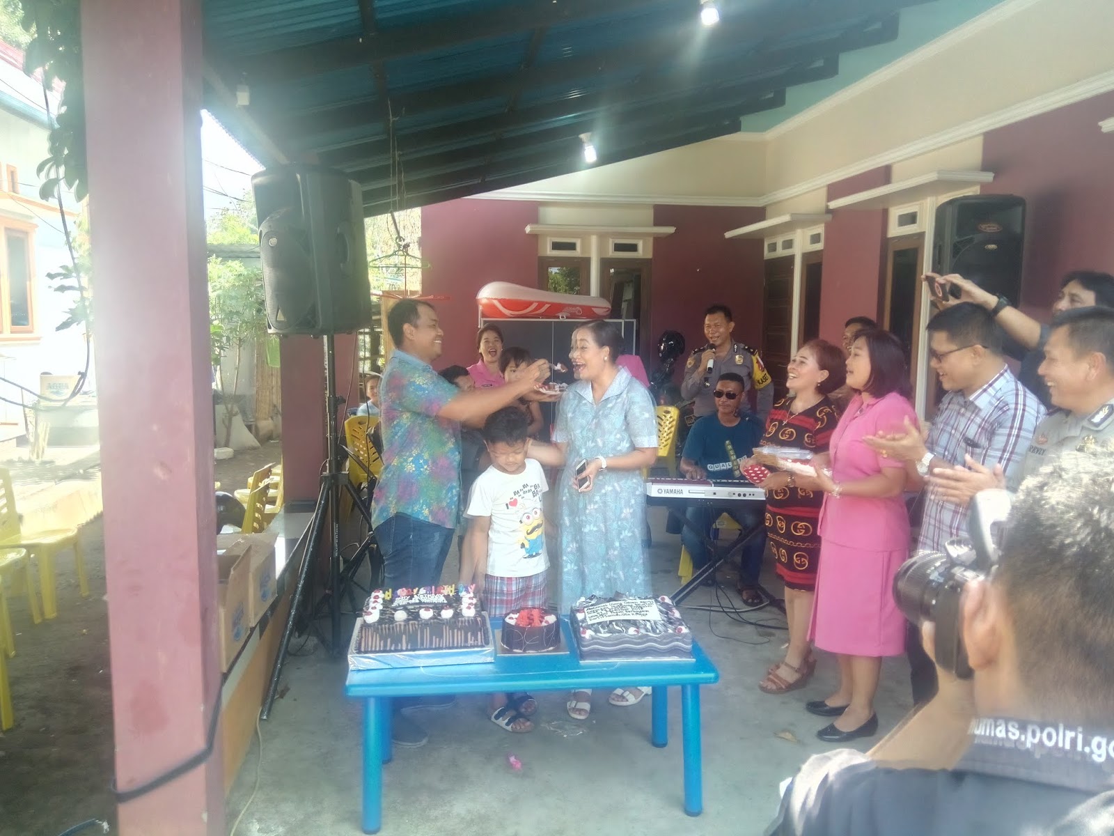 Acara pun berlangsung penuh suka cita dengan pemasangan lilin HUT yang berangka 41 dengan suka cita Kapolres membrikan kesaksian di HUT dirinya didamping Istri dan anak-anak