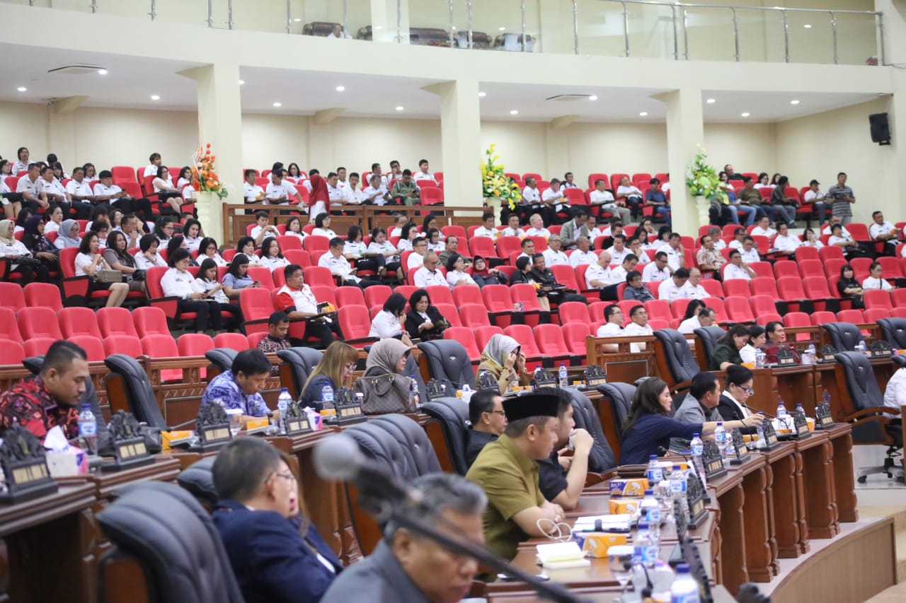 Rapat paripurna tersebut dipimpin oleh ketua DPRD Sulut Andrei Angou didampingi Wakil Ketua Wenny Lumentut, Wakil Ketua Marthen Manopo, Wakil Ketua Stvanus Vreeke Runtu serta dihadiri langsung Wakil Gubernur Steven Kandou.