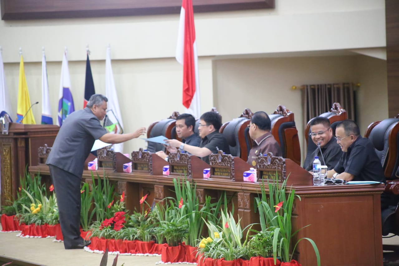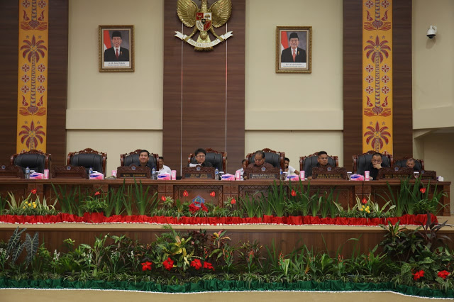 Rapat paripurna tersebut dipimpin oleh ketua DPRD Sulut Andrei Angou didampingi Wakil Ketua Wenny Lumentut, Wakil Ketua Marthen Manopo, Wakil Ketua Stvanus Vreeke Runtu serta dihadiri langsung Wakil Gubernur Steven Kandou.