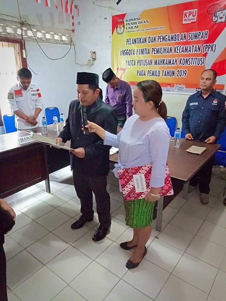 Ketua KPU Jamal Rahman, saat penyampaian sambutan usai acara pelantikan, menuturkan bahwa pelantikan dan pengambilan sumpah jabatan kepada para anggota PPK merupakan amanah Undang-Undang sesuai hasil keputusan MK terkait penambahan dua anggota sehingga, saat ini anggota PPK menjadi lima personil.