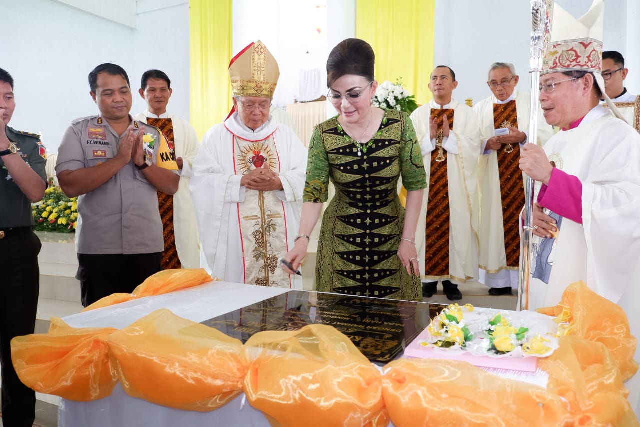 MINSEL,DETIKAWANUA.com – Pemerintah Desa dan Masyarakat tentu diberkati Tuhan dan bersyukur atas hari yang bahagia juga atas kunjungan Bupati Minahasa Selatan Dr. Christiany Eugenia Paruntu SE, Minggu (10/2/2019) bertempat di Desa Kroit Kecamatan Motoling dalam acara peresmian Paroki Hati Kudus Yesus.