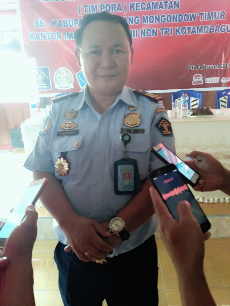 Kepala Kantor Imigrasi Kelas III Non TPI Kotamobagu, Joni Runagit saat diwawancarai awak media.