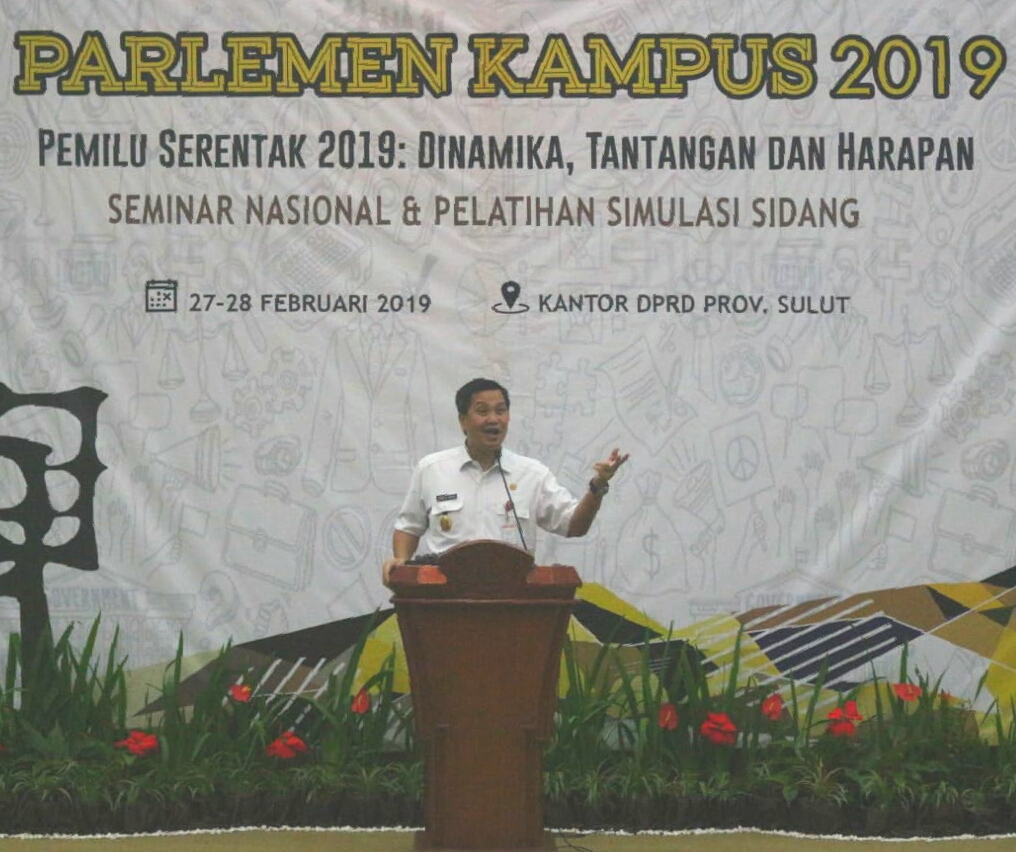 Hal tersebut disampaikan langsung Wakil Ketua DPR-RI Drs. Utut Adianto pada Kegiatan  Parlemen Kampus 2019 dengan Tema Pemilu Serentak 2019 : “Dinamika, Tantangan dan Harapan” yang turut dihadiri Wakil Gubernur Sulawesi Utara Drs. Steven O. E. Kandouw di Ruang Paripurna Kantor DPRD Provinsi Sulawesi Utara, Rabu (27/02).