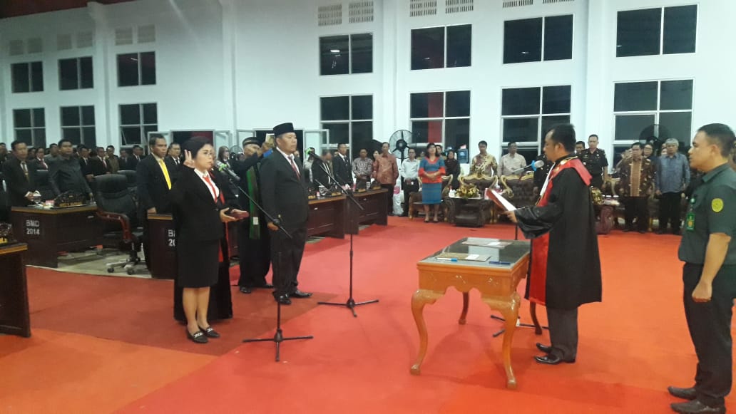 Pelantikan kali ini ditandai dengan pengambilan sumpah/janji sebagai ketua DPRD definitif, oleh Ketua Pengadilan Negeri Tondano ST IKO Sudjatmiko SH, MH di sport hall kantor bupati Mitra, Senin (25/2/2019), disaksikan langsung Plt Ketua DPRD Mitra Tonny H Lasut, Wakil Ketua DPRD Mitra Katrien Mokodaser serta jajaran DPRD Mitra dan Bupati Mitra James Sumendap SH dan Wabup Joke Legi, beserta jajaran.