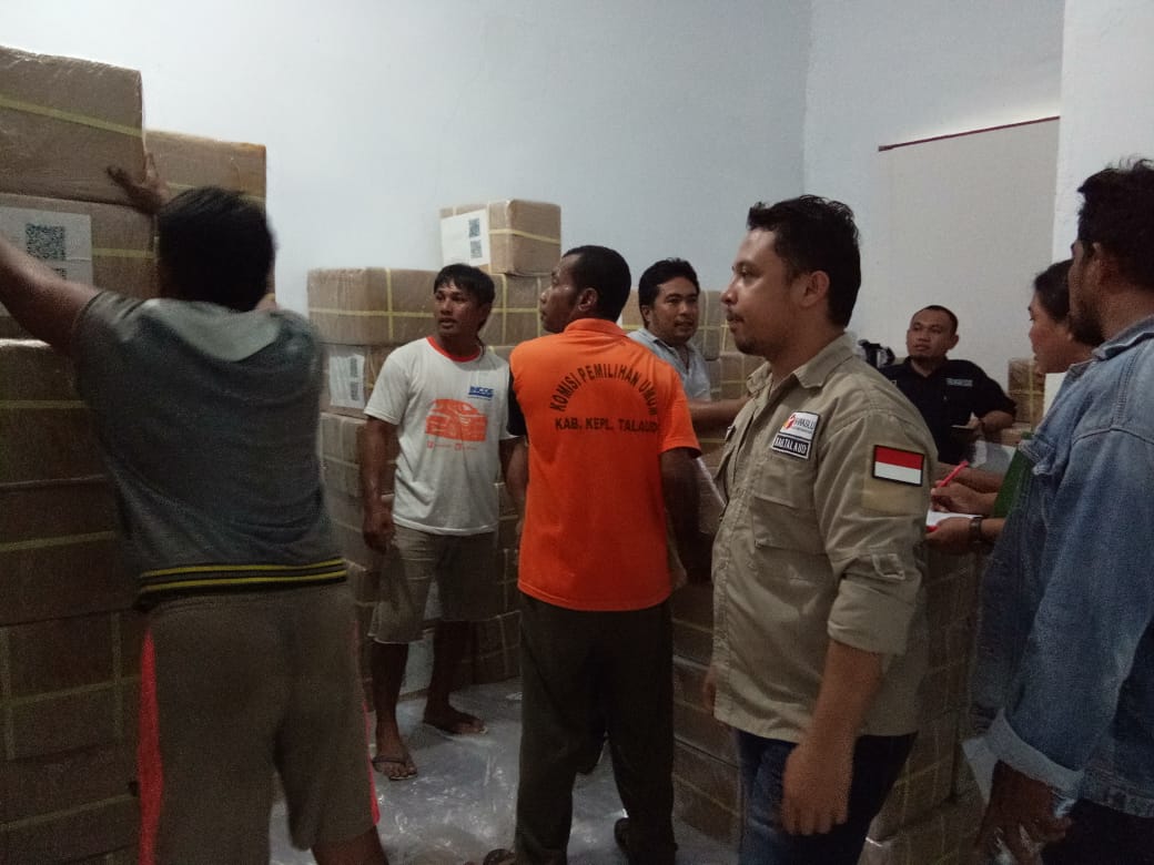 Semantara melaksanakan tugas, Koordinator Divisi Pengawasan, Humas dan Hubungan Antar Lembaga Bawaslu Talaud Tevi C. Wawointana SPd mengatakan hasil pengawasan yang dilakukan oleh Bawaslu bahwa Surat Suara yang bergerak dari Kapal bergeser ke Gudang Logistik KPU Talaud dengan menggunakan truk dan dipastikan 184 Koli sampai dengan aman.