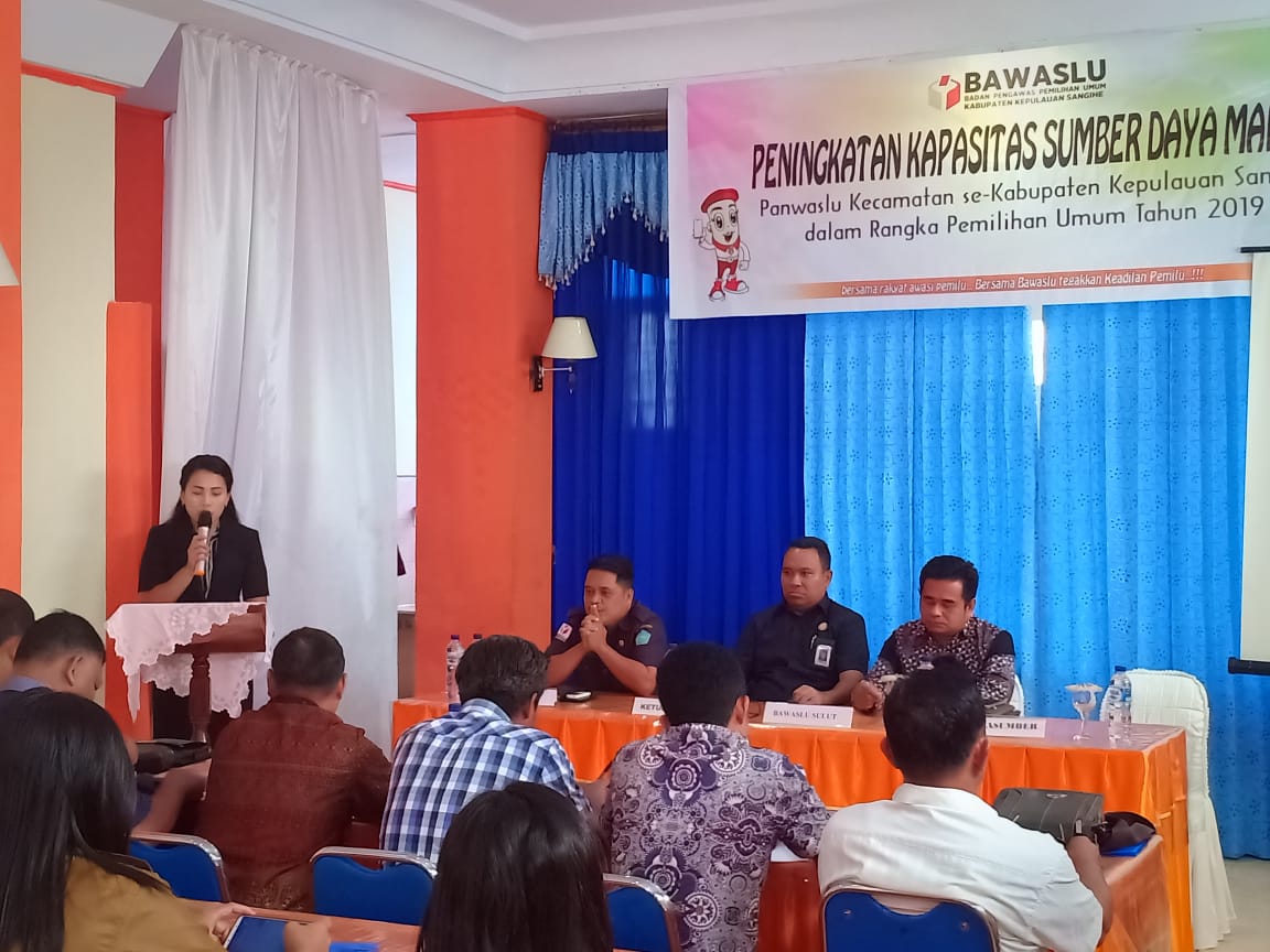 Tahuna, detikawanua.com – Guna melakukan pengawasan Pemilihan Umum (Pemilu) tahun 2019. Badan Pengawas Pemilihan Umum (Bawaslu) Kabupaten Kepulauan Sangihe melaksanakan kegiatan yang gunanya untuk Peningkatan Kapasitas Sumber Daya Manusia (SDM) bagi Pengawas Pemilu Kectamatan (Panwascam) di Kabupaten Sangihe.